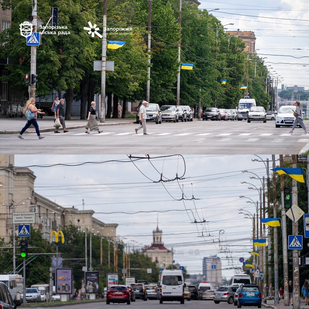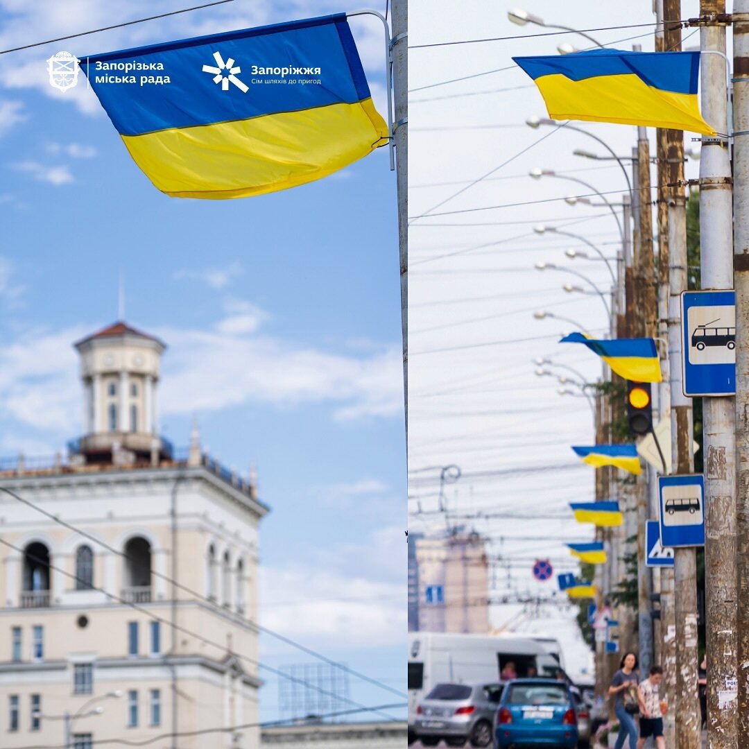 У День Конституції України Запоріжжя замайоріло понад тисячею синьо-жовтих прапорів! По проспекту Соборному та будівлях уздовж встановлено понад тисячу українських стягів.
