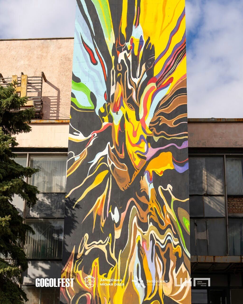 В рамках фестивалю сучасного мистецтва GOGOLFEST POKROVA @gogolfest_org відомий запорізький художник Володимир Гуліч @artzebs створив 30-метровий мурал “Покрова”. Асистентом-помічником став вінницький художник Олександр Никитюк.