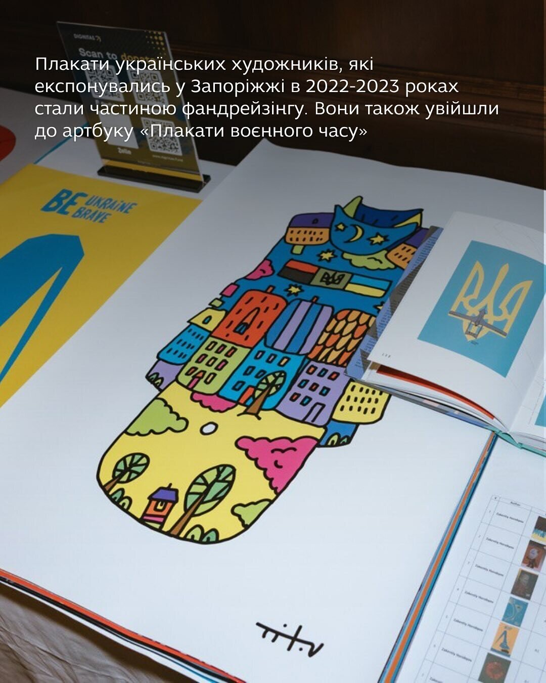 Плакати українських художників, які виставлялись в Запоріжжі просто неба протягом 2022-2023 років та книжки «Плакати воєнного часу» допомогли зібрати кошти для освітнього проєкту.