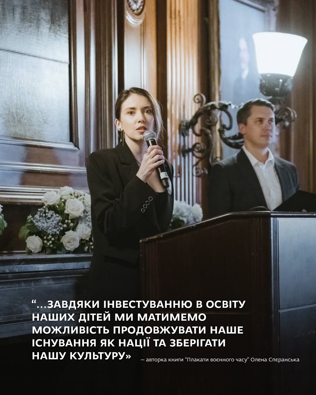 «Пишаюсь бути частиною цієї події та можливістю допомогти українським дітям, які страждають від щоденних обстрілів. Українці — високо освічені, працьовиті та креативні люди, і завдяки інвестуванню в освіту наших дітей ми матимемо можливість продовжувати наше існування як нації та зберігати нашу культуру» — коментує Олена Сперанська, авторка книги та кураторка @ukrainianwartimeposters, директорка резиденції @biruchiy.