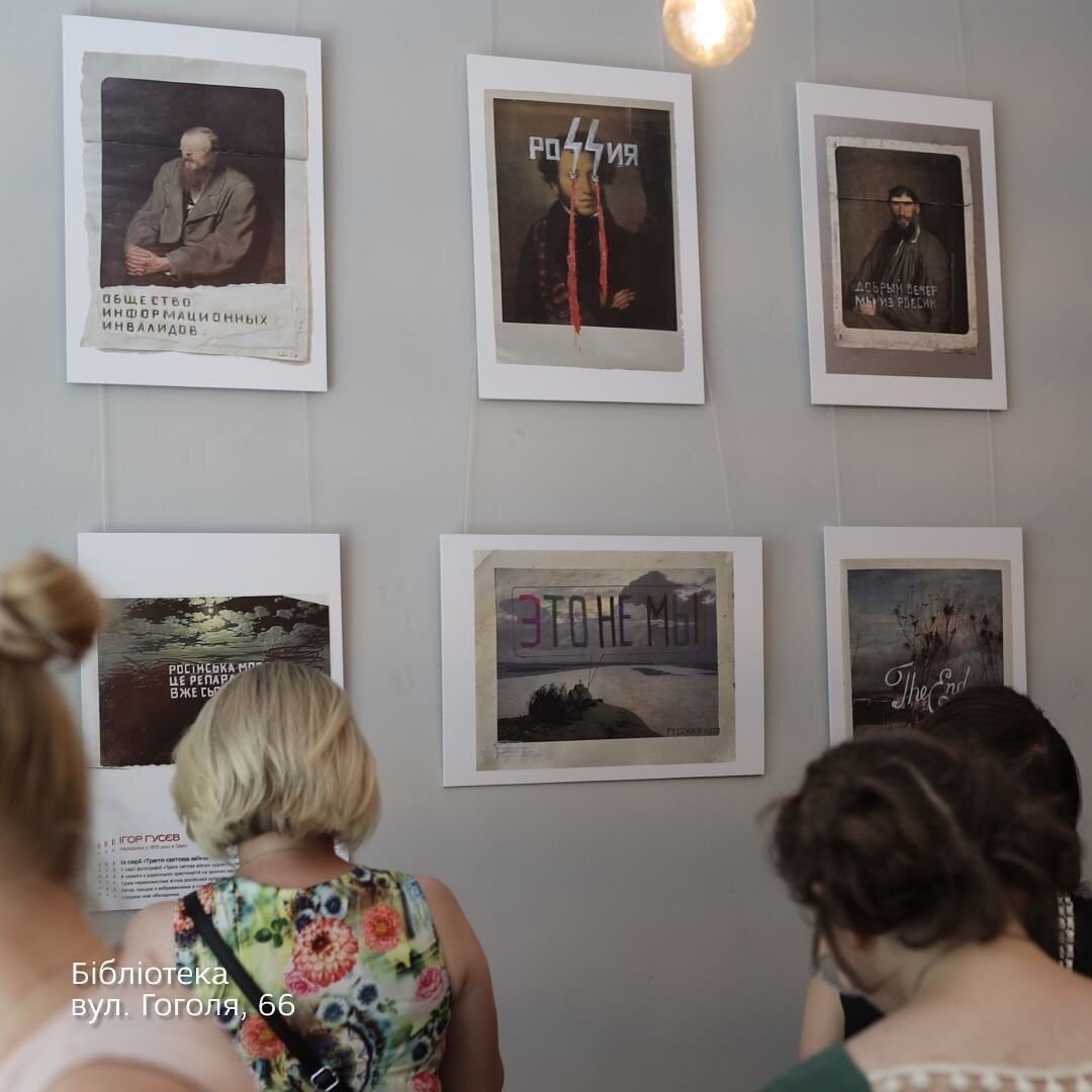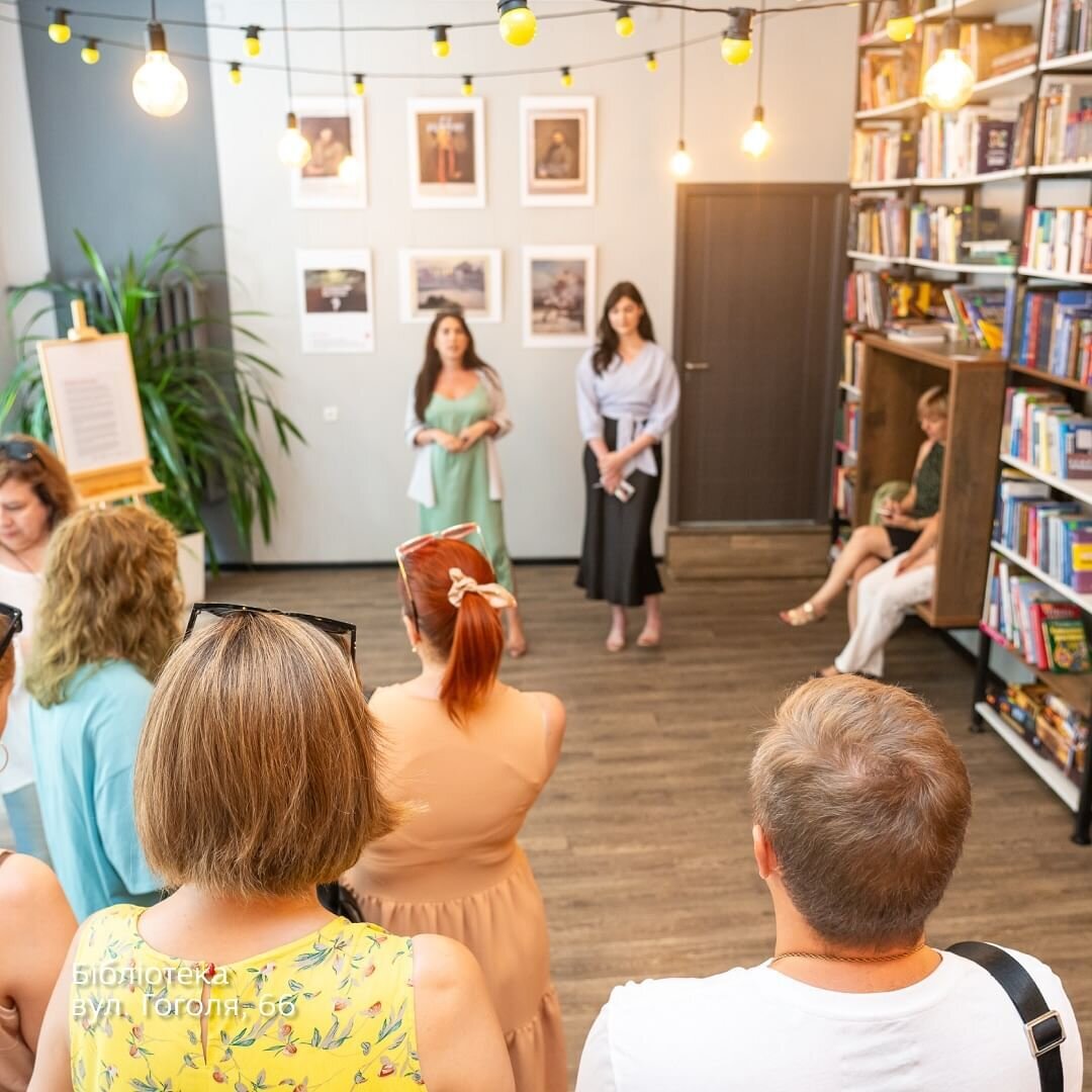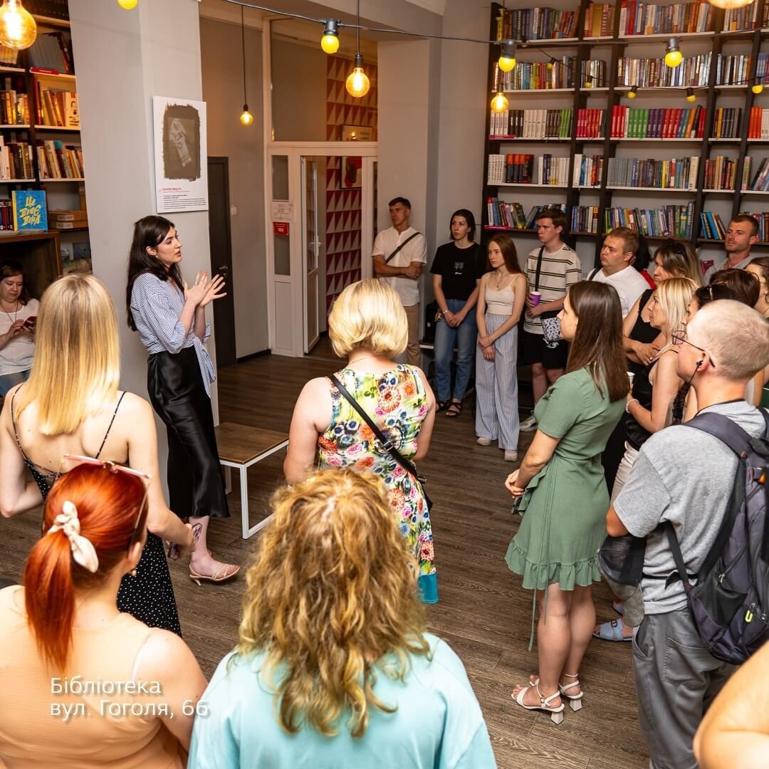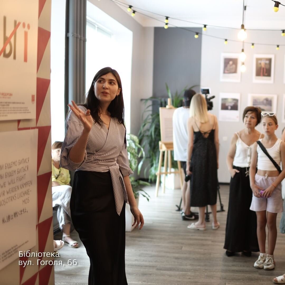 20 липня відбулось відкриття виставки “Мовні вправи“ одразу на двох локаціях: спочатку - о 14:00 в бібліотеці на вул. Гоголя, 66, а потім - о 16:00 в ЦКП “Титан“, вул. Перемоги 131.