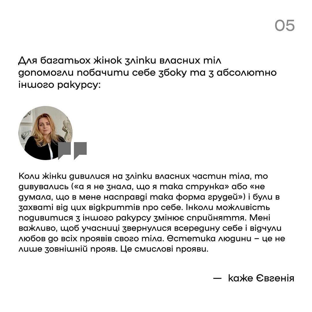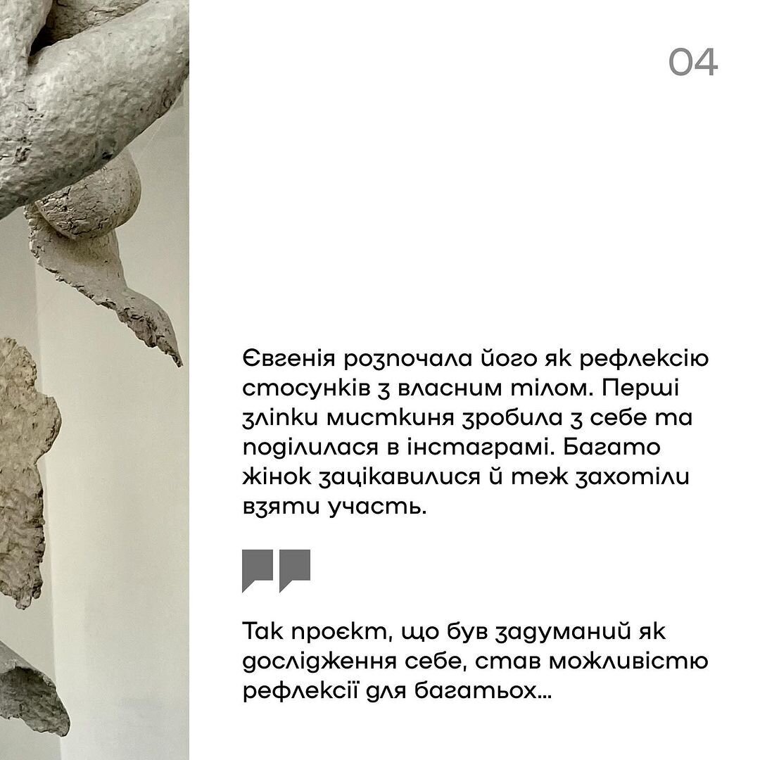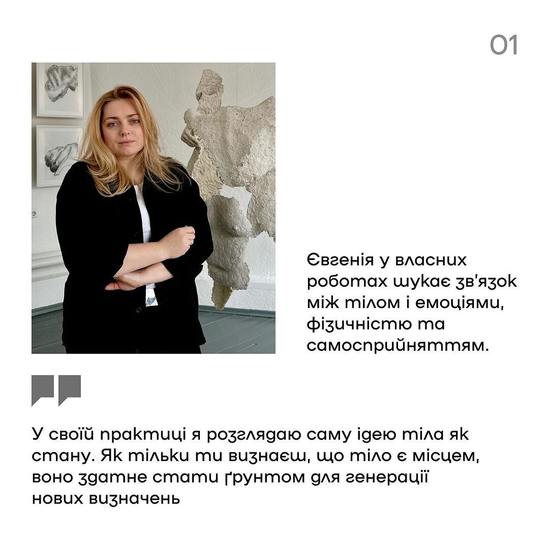 Інформацію для допису брали з тематичного матеріалу “Терапія «Тілом». Рефлексія на виставку Євгенії Григор’ян” незалежного жіночого журналу DIVOCHE.MEDIA.