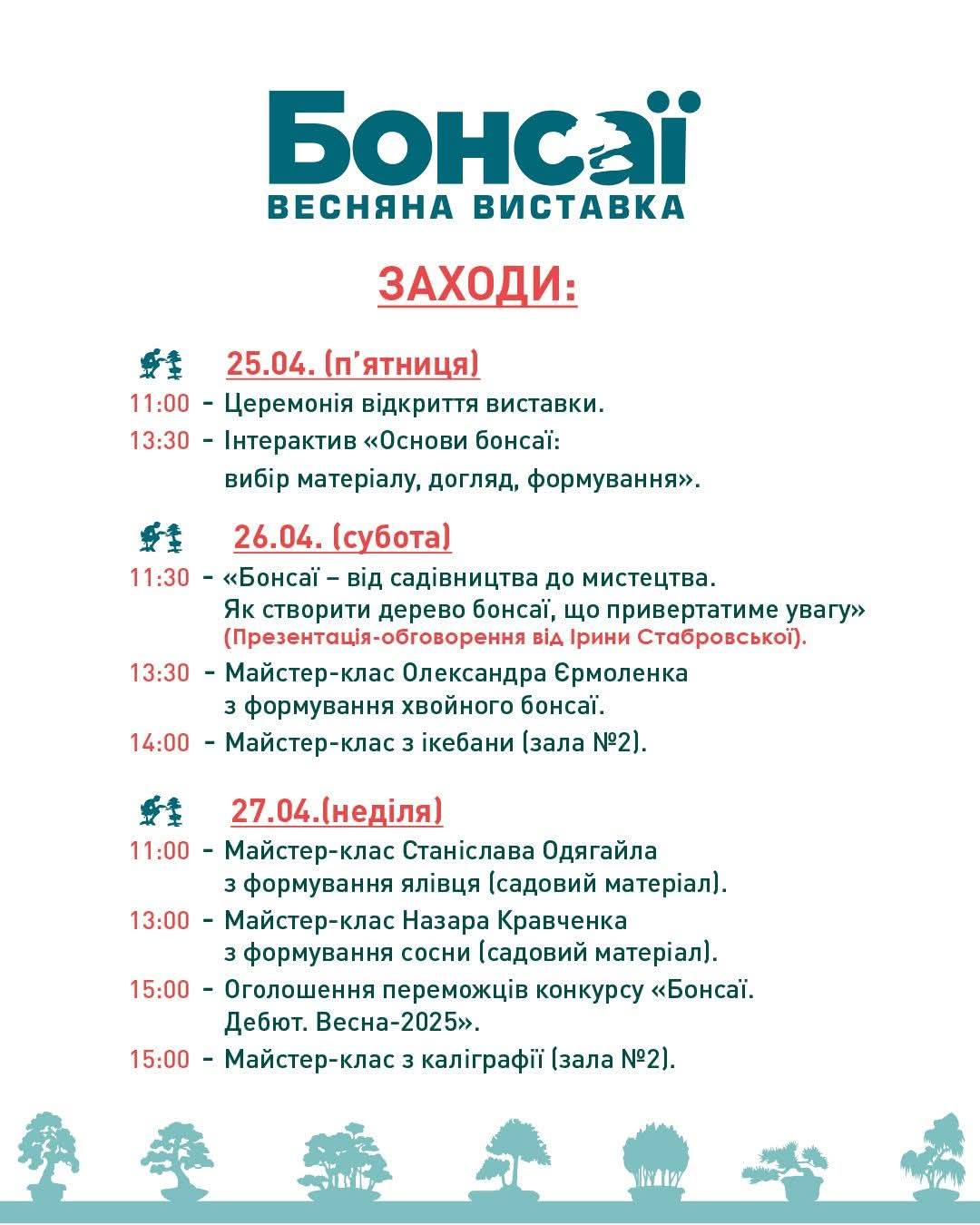 - майстер-класи з формування бонсай, де ви зможете спостерігати за дивовижними процесом їх створення;