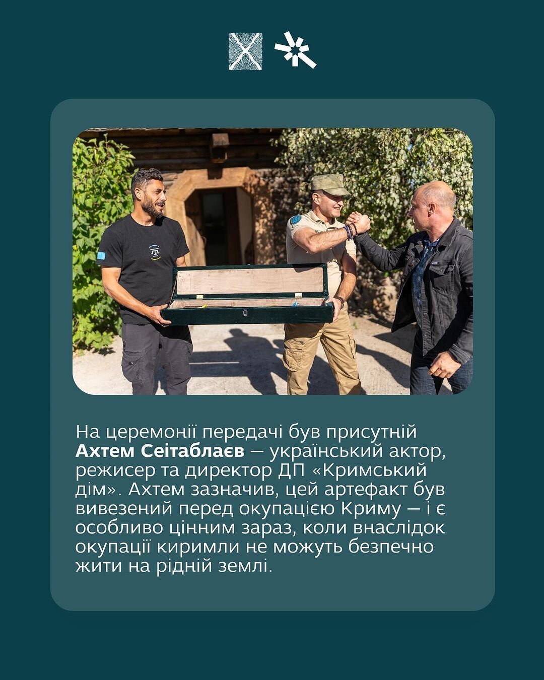 Попередньо відвідавши @zaporizhzhiafilmfest, на урочистій церемонії передачі був присутній Ахтем Сеітаблаєв @akhtemseit — український актор, режисер та директор ДП «Кримський дім». Ахтем зазначив, цей артефакт був вивезений перед окупацією Криму — і є особливо цінним зараз, коли внаслідок окупації киримли не можуть безпечно жити на рідній землі. Башташ є символом величного роду, що очолював вільне Кримське ханство. Й факт передачі артефакту в сакральному для українців місці — острові Хортиця, також є символічним для дружніх взаємин двох народів.