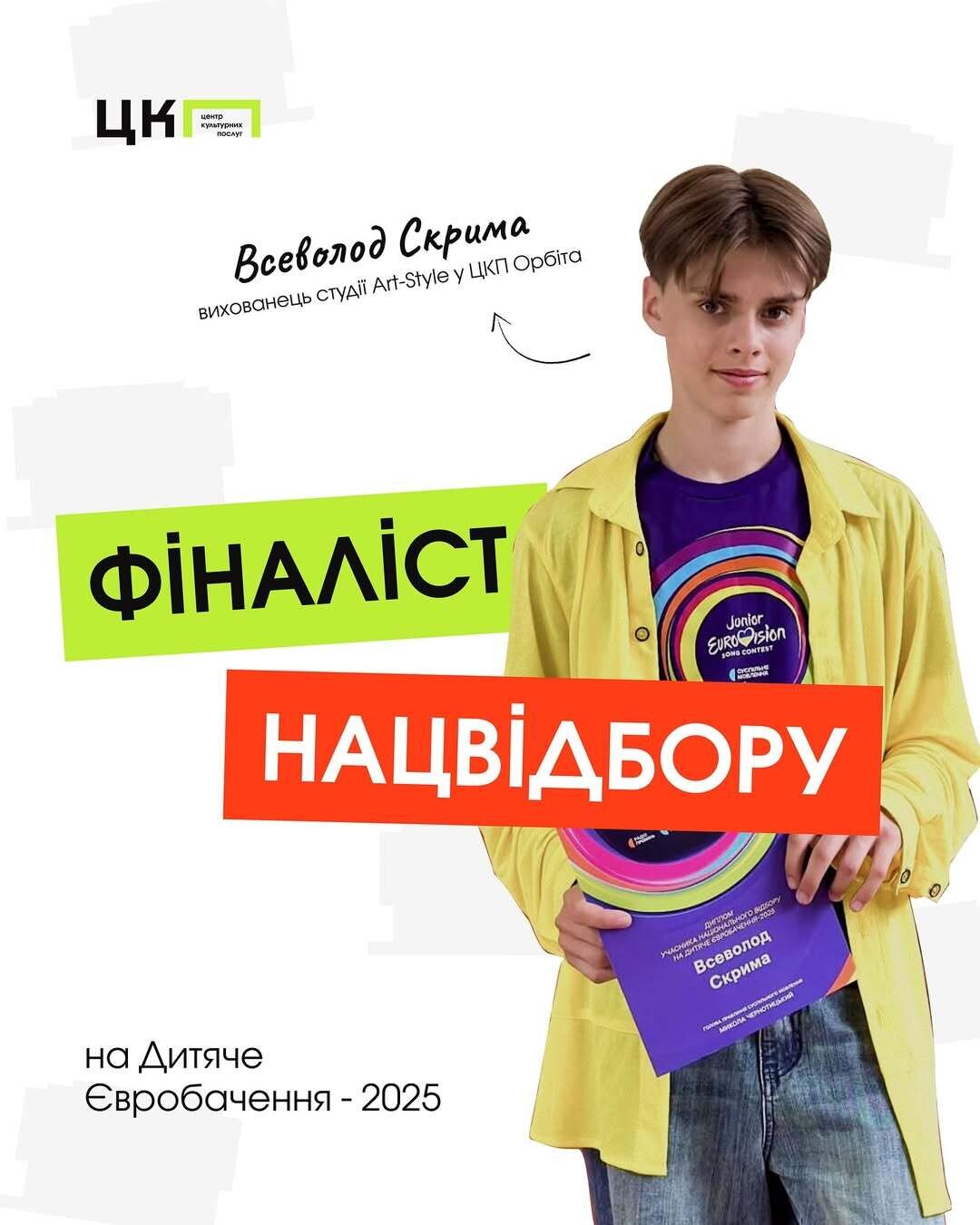 Нещодавно ми писали, що наш 13-річний земляк і вихованець студії @artstyle.vocal_studio у ЦКП Орбіта — Всеволод Скрима @vvsevolodvse потрапив до лонглиста Нацвідбору на Дитяче Євробачення-2025 @suspilne.eurovision .