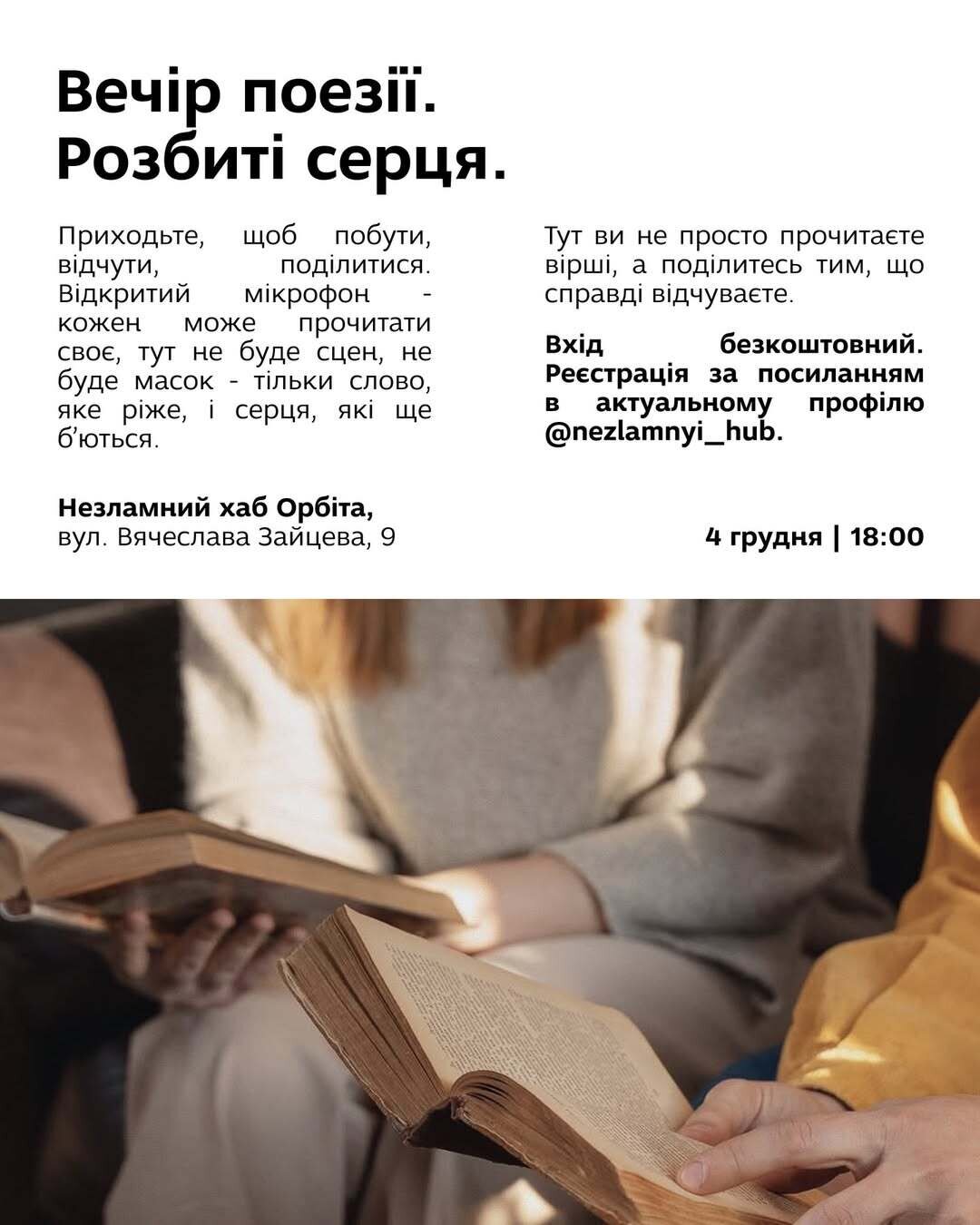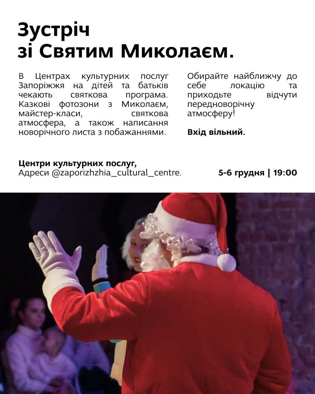 Відкриття незламної ялинки, заходи до Дня Святого Миколая, вистави, концерти, майстер-класи (квіткові, кулінарні, творчі), екскурсії, лекції, музичні івенти, відкриття виставки, вечір поезії