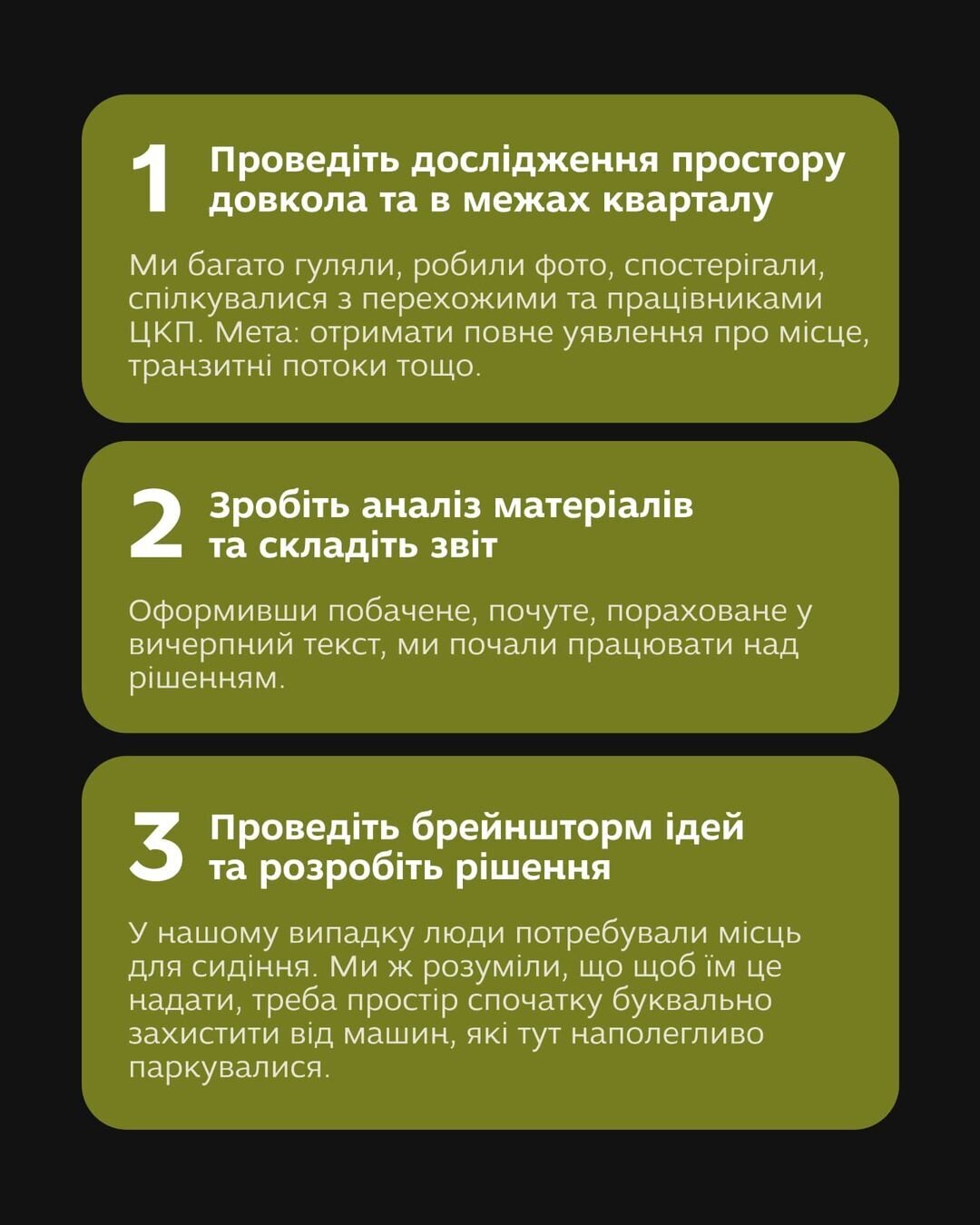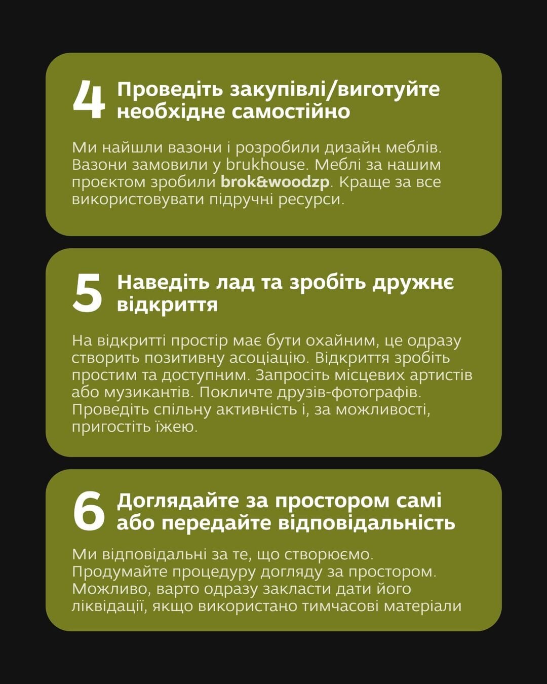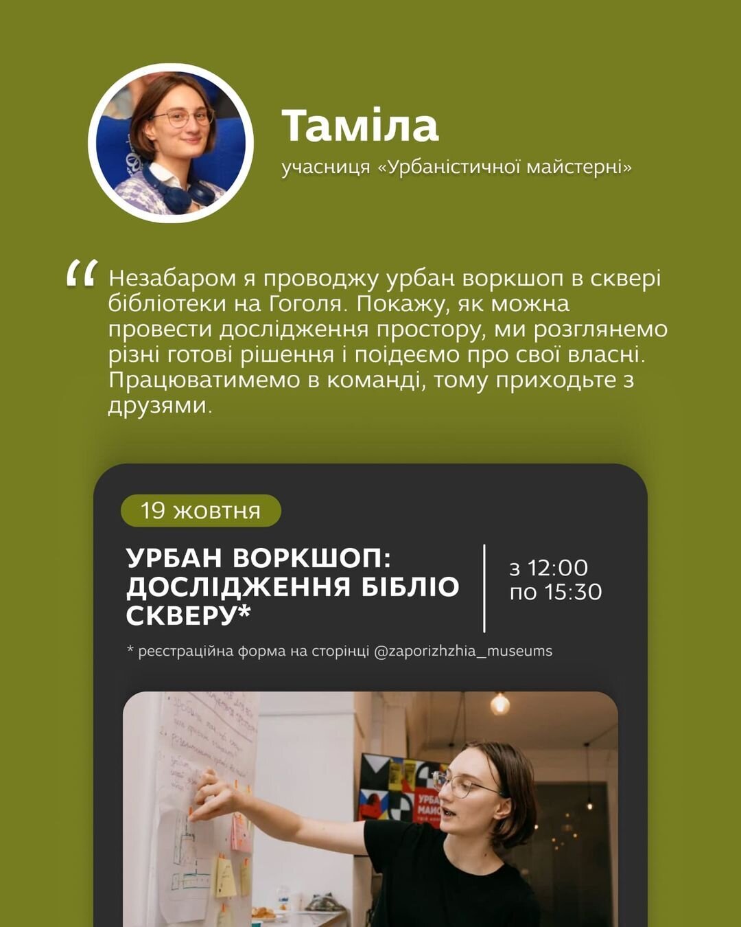 У цьому дописі ми спілкуємося з @tandllema — учасницею нещодавнього урбан-проєкту в Запоріжжі — громадського простору просто неба біля Незламного хабу орбіта від «Урбаністичної майстерні», проведеної @molod.online.