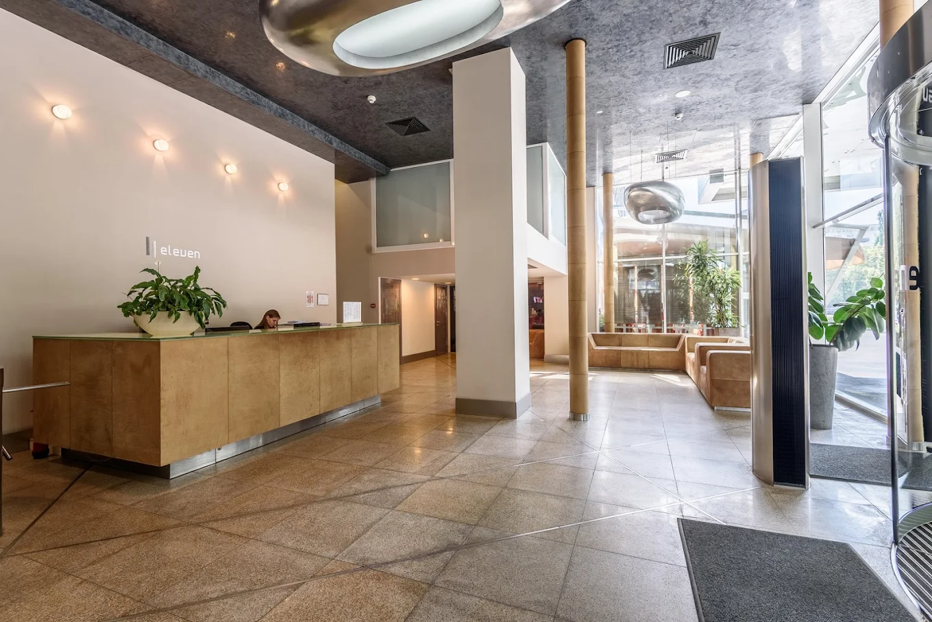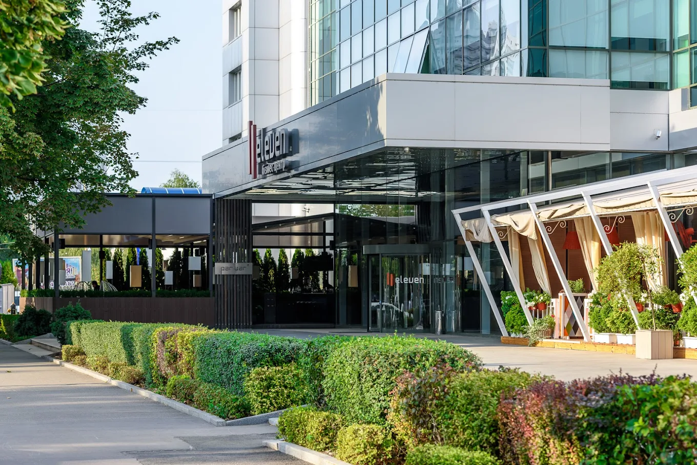 Бізнес-центр «Eleven» – сучасний діловий комплекс, розташований у Солом’янському районі. Високі стелі, світлі просторі приміщення та краєвид на місто, об’єднані дизайн-рішеннями в стилі лофт, створюють ідеальне середовище для ведення бізнесу. Тут є безліч локацій для проведення конференцій, ділових зустрічей, презентацій та тренінгів. Серед переваг комплексу – зелена зона з лавками та альтанками для відпочинку, амфітеатр з LED екраном, тераса на даху, фітнес-центр, багаторівневий паркінг на понад 700 місць.