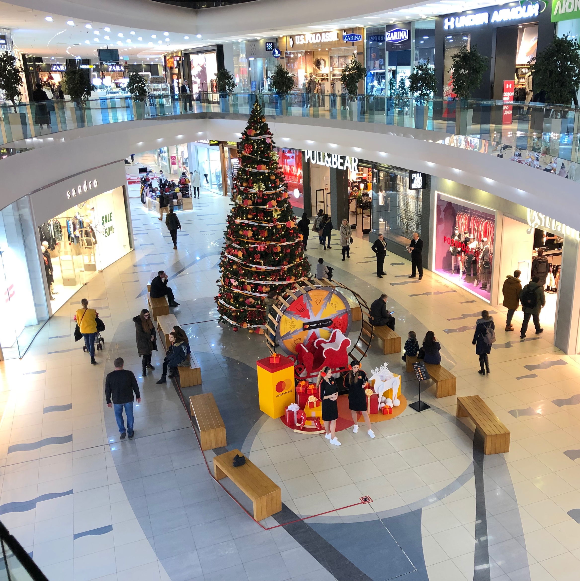 SkyMall – синонім модного шопінгу в Україні. Це один з найбільших торгівельних центрів Києва з найкращою підбіркою модних світових брендів. Загальна площа ТРЦ складає 88 000 кв. м, на яких представлені понад 250 магазинів. Зона розваг представлена дитячим розважальним центром Ігроленд, кінотеатром та боулінгом. На 3 поверсі ТРЦ знаходиться зона фуд-корту з затишними ресторанами й великим вибором страв. Придбати продукти харчування та товари для дому відвідувачі можуть у гіпермаркеті NOVUS.