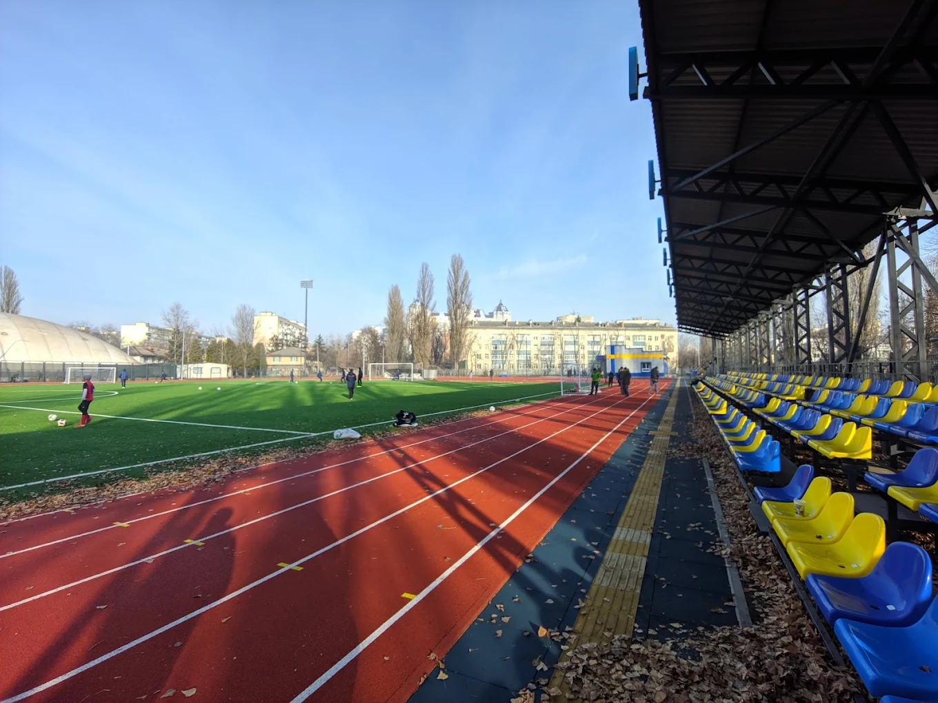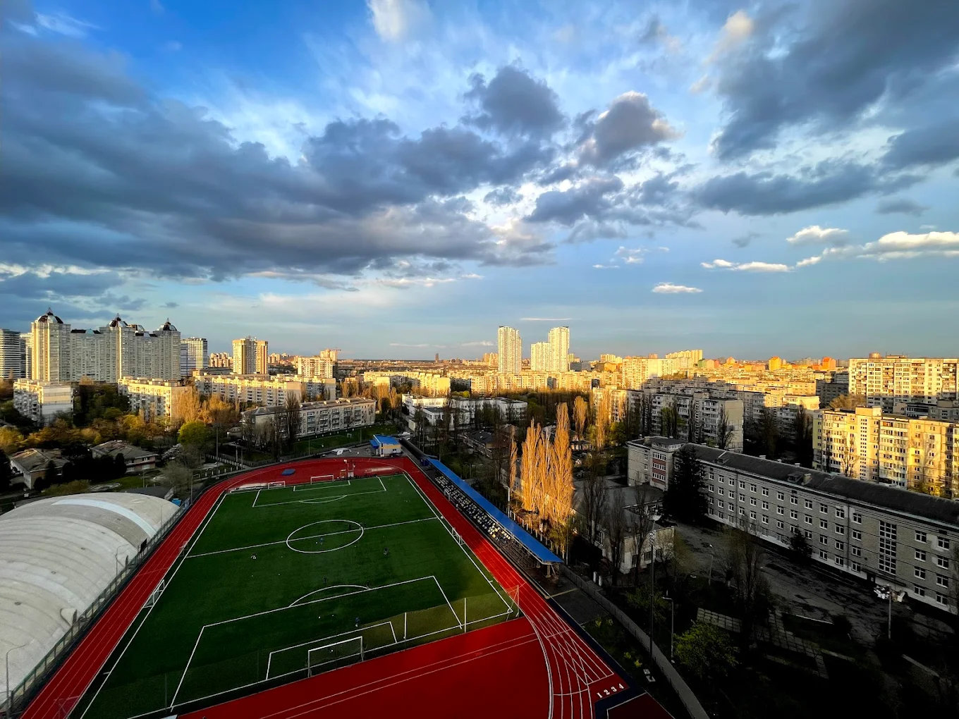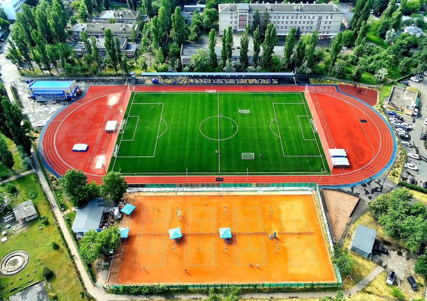 Стадіон «Русанівець» у Дніпровському районі вирізняється сучасним футбольним полем із круговими біговими доріжками та спортивними майданчиками. Крита трибуна розрахована на 480 місць. Також арену обладнано легкоатлетичними секторами для стрибків з жердиною, стрибків у висоту та довжину.