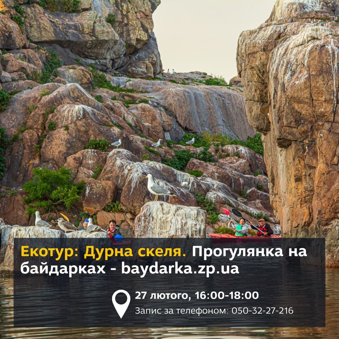 Екотур: Дурна скеля. Під час прогулянки на байдарках ми дізнаємось більше про історію і легенди цих місць, пройдемо вздовж Дурної скелі та північної частини острова Хортиця.