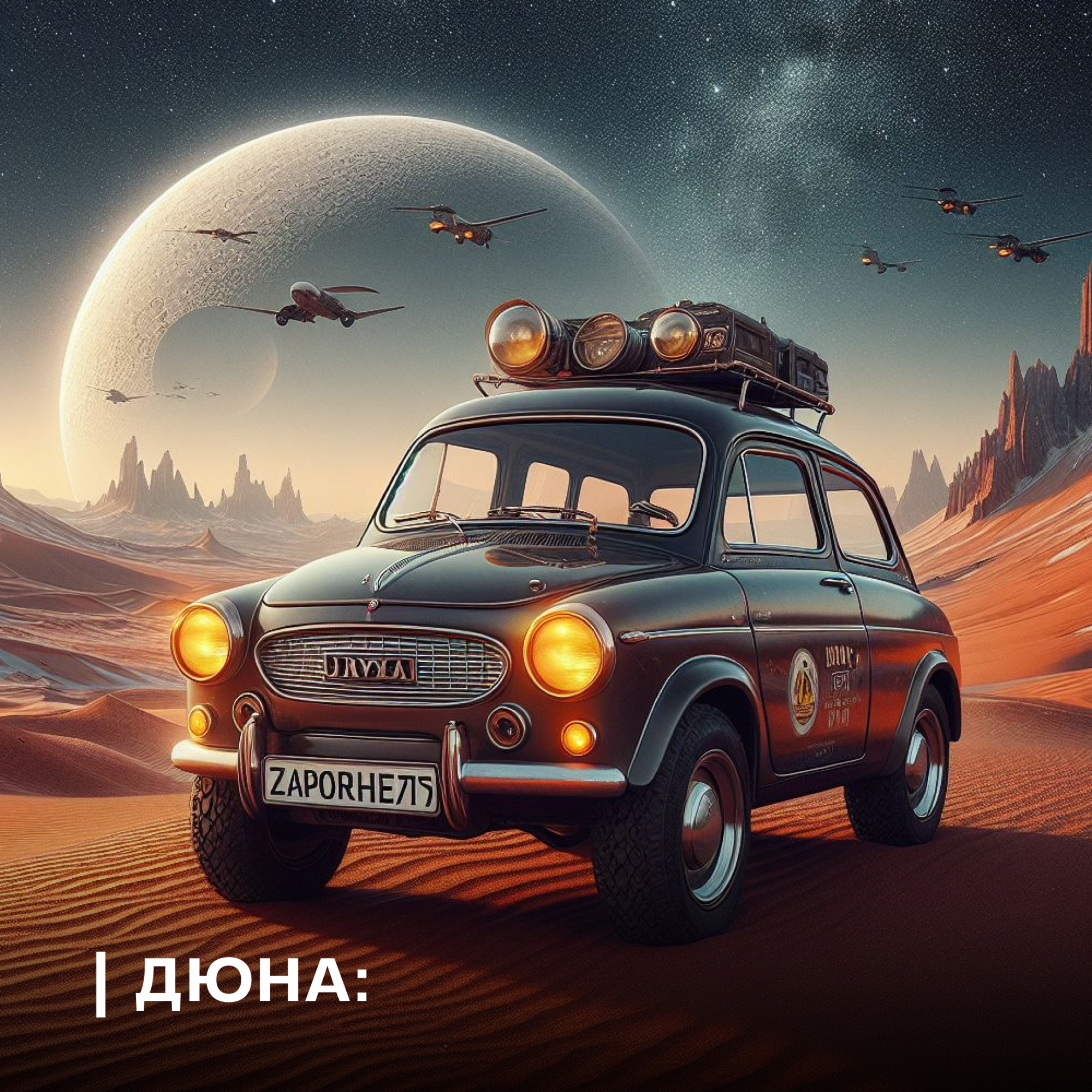 Ми віримо, що ця автівка стала б культовою не лише у нашому світі, а й у безлічі вигаданих! Уявити, як би виглядав Запорожець у різних всесвітах, нам допоміг штучний інтелект.