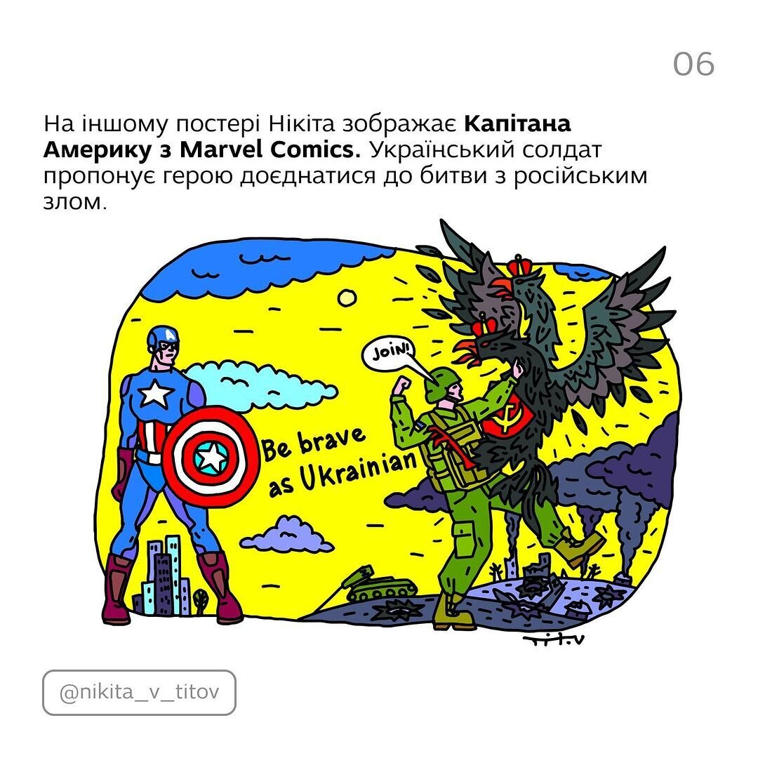 Плакати українських сучасних художників - унікальні. Митці використовують безліч форм і засобів для того, щоб донести власну думку про війну. Серед них - елементи з масової культури, знайомої багатьом.