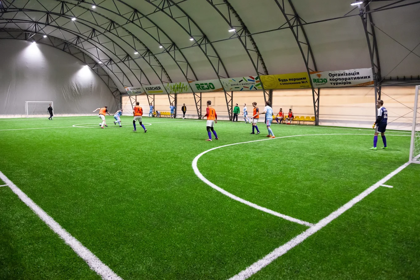 Футбольне поле «REJO» представлено закритою ареною розміром поля приблизно 40×20 м, зі штучним покриттям Saltex та гумовим гранулятом. Також до послуг гостей пропонують криті трибуни на 180 місць та роздягальні з душовими. Доступна парковка на 40 авто.