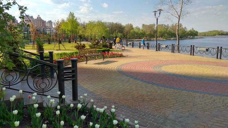 «Наводницький парк» знаходиться у Печерському районі біля річки Дніпро. Має в плані неправильний трикутник, що утворюється Набережним шосе, Дніпром та мостом Патона. Площа становить понад 11 га. Тут відвідувачі можуть побачити дерева різних видів: листяні та хвойні, а коли настає тепла пора, парк розквітає завдяки пишним клумбам. На честь 1500-річчя столиці в парку було встановлено пам’ятник засновникам Києва, що є одним із найромантичніших місць столиці. За традицією, після одруження молодята приїжджають до нього, щоб закріпити свій шлюб, адже пам’ятник символізує не тільки заснування міста, а й заснування нової сім’ї. Також на території розташовано алею Слави миротворців ООН та пам’ятний знак у вигляді гранітного каменю з анотаційним написом і емблемою організації.