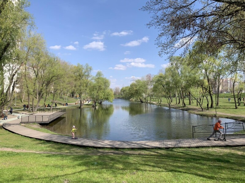 Парк з водними об’єктами вздовж проспекту Романа Шухевича знаходиться у Деснянському районі. Площа становить 9,5 га. Це сучасний парк із дитячими та спортивними майданчиками, футбольним полем, шаховим павільоном, майданчиком для вигулу собак та альтанкою у кримськотатарському стилі. Для бажаючих порибалити на березі озера облаштовано спеціальні вимостки. Тут відвідувачі можуть помилуватися композиціями зі злакових трав, дерев модрини, катальпи, туї та ялини, а також кам’яним ландшафтним басейном із різних видів рослин. У парку засаджене лавандове поле площею 450 кв.м.